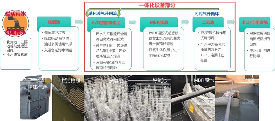 工藝技術(shù):氣升回流一體化污水處理技術(shù),使用A/O接觸氧化與MBR膜法工藝