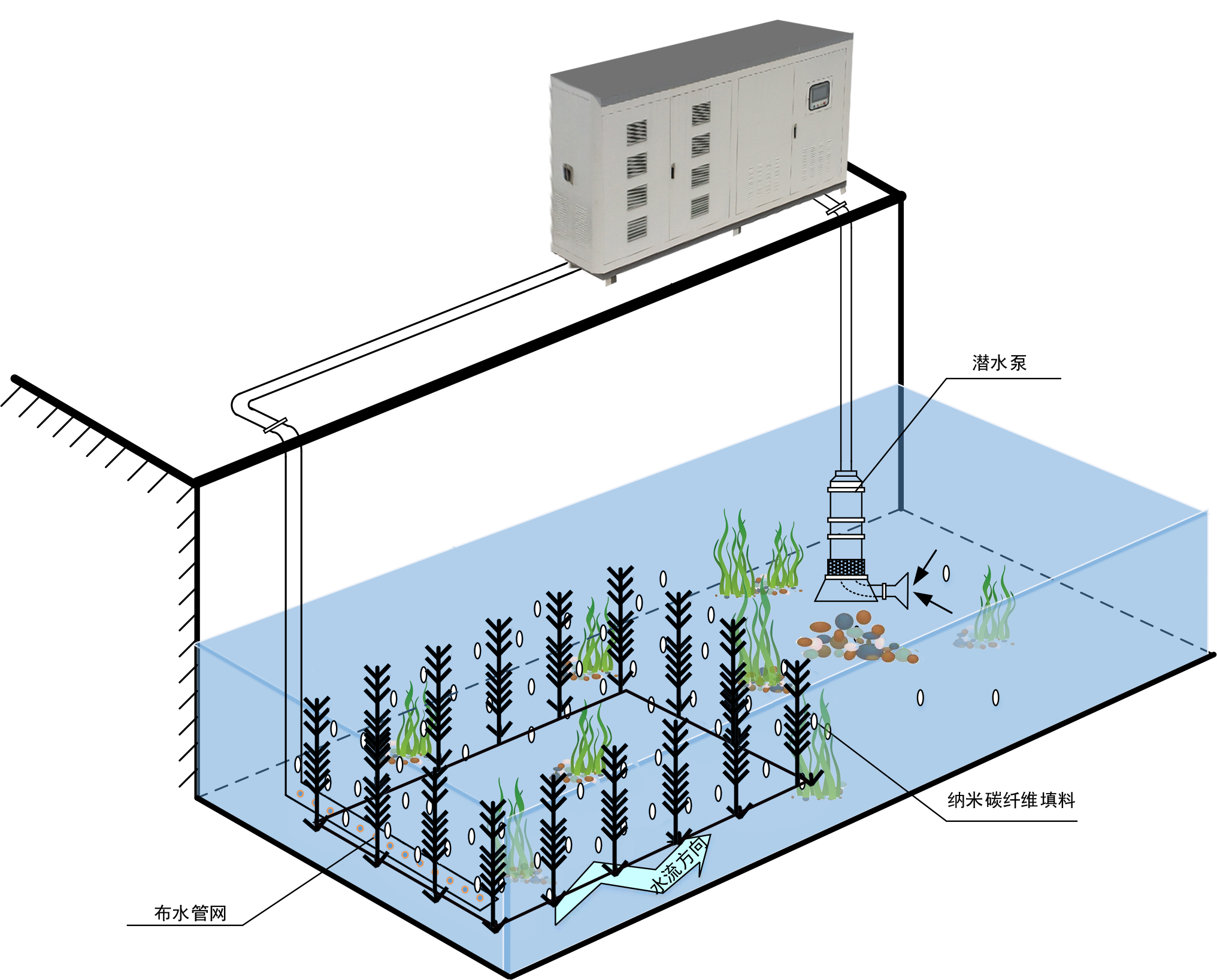 高效富氧生物技術(shù)結(jié)合納米碳纖維載體,為各種類型的微生物的高效繁殖提供有效的附著空間,快速形成生物膜。載體表面形成的生物膜以污水中的有機物為食料加以吸收、同化,高效生物浮床可以有效的發(fā)揮水生植物凈化與微生物高效降解水體中污染的功能,對水體中N、P具有較強的凈化作用。此技術(shù)適用于水流流速較大,水位較深的非行洪中小河流。